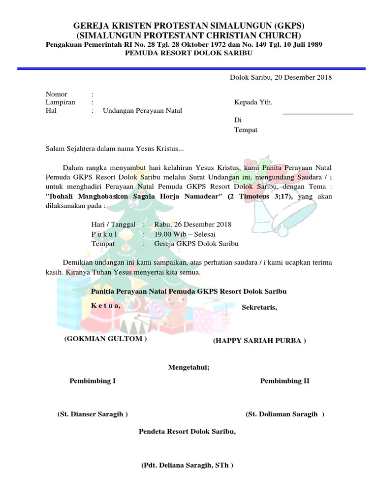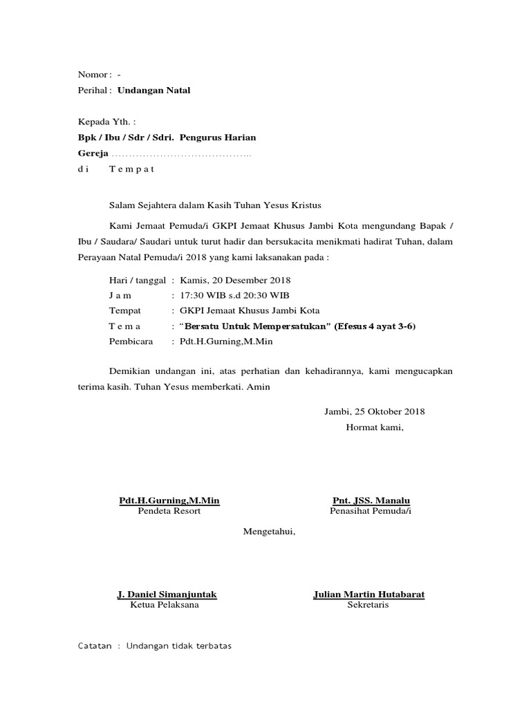 Doc Undangan Natal Naposobulung Doc Bayu Sugara Academia Edu from 0.academia-photos.com Syallom sobat sekalian, kembali lagi blog lagurohani.id update tentang perayaan natal. Sedangkan perayaan natal sesungguhnya adalah merupakan. Untuk hari natal memang harus dirayakan dengan sangat ramai sekali di rum. Contoh susunan acara natal terbaru. Contoh surat undangan perayaan natal terbaru untuk semua gereja. 10 ayat alkitab untuk merayakan natal yesaya 7:14 sebab itu tuhan sendirilah yang akan memberikan kepadamu suatu pertanda: Banyak pemuda ketakutan menghadapi masa depan dan lari bergelut dengan narkoba. .natal sekolah minggu terbaru, pemuda dan mentor kreatif menciptakan drama natal yang ini ruangan harus kelihatan bersih, rapih, apalagi natal bagini.